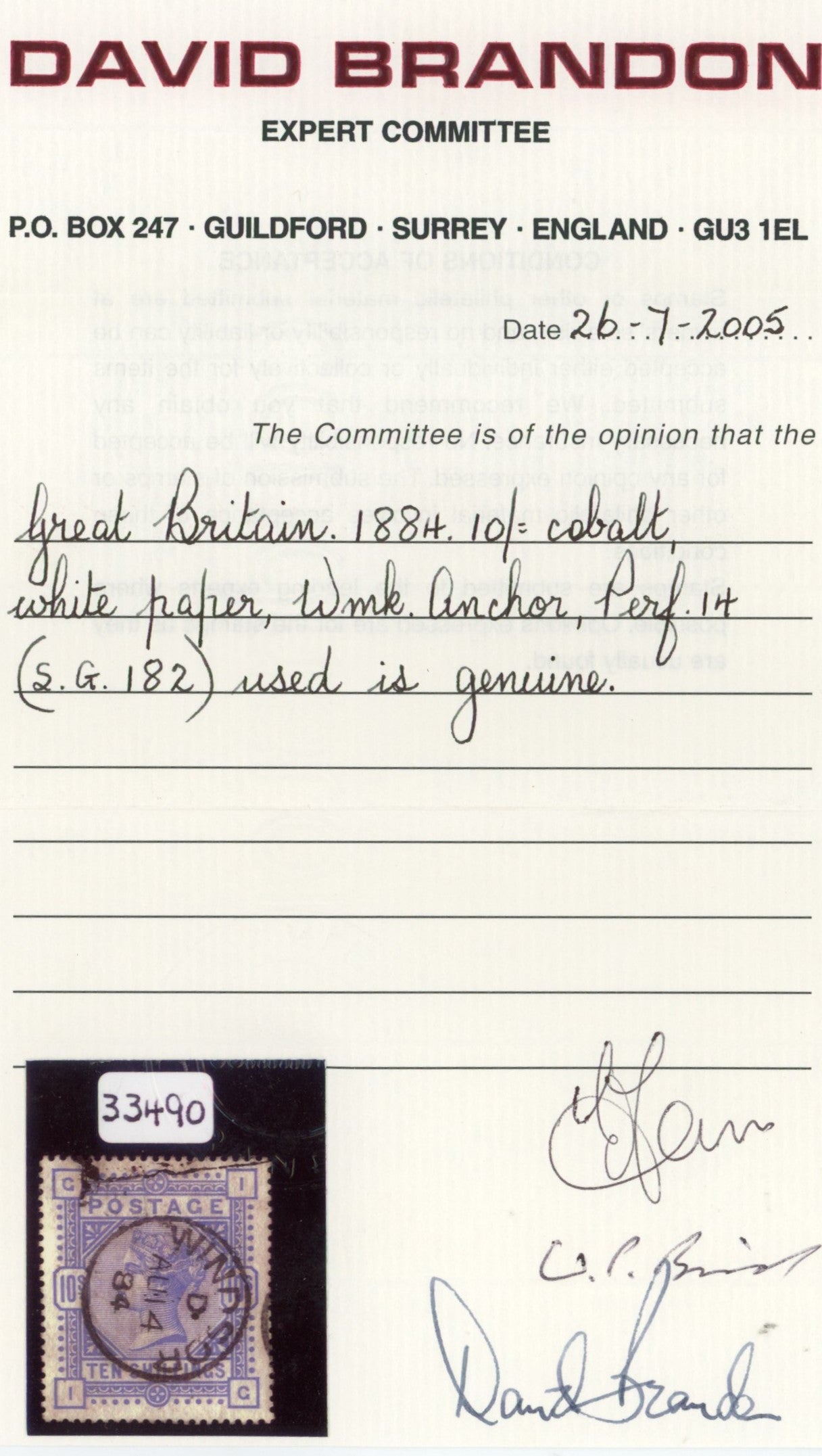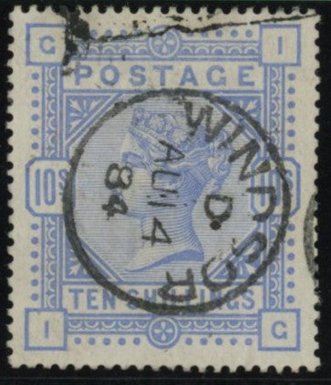 Great Britain 1884 10s cobalt, white paper, SG182.