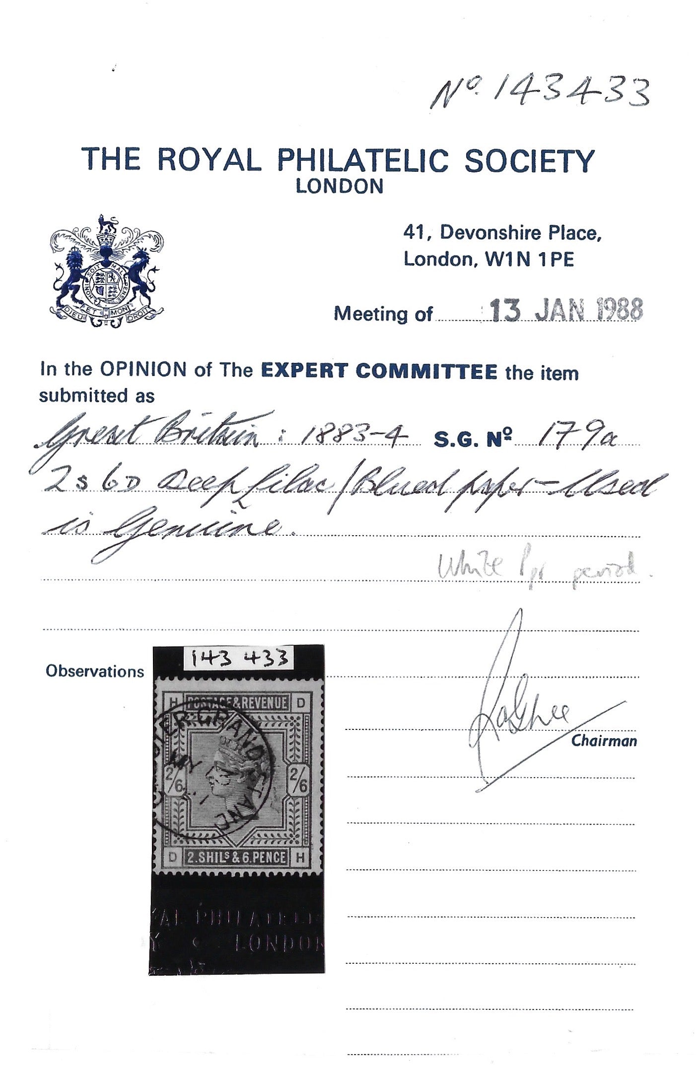 Accompanied with a 1988 Royal Philatelic Society (RPS) Certificate of Authenticity.