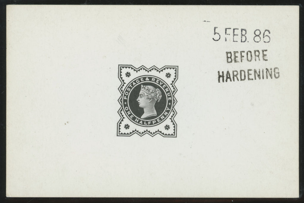 A very fine example printed in black on white glazed card (91 x 60mm), endorsed "BEFORE HARDENING" and dated "5 FEB 86".