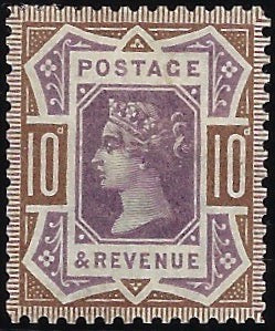 A superb quality unused example with original gum of the original trials for the 10d value with the head plate in purple and duty plate in brown.
