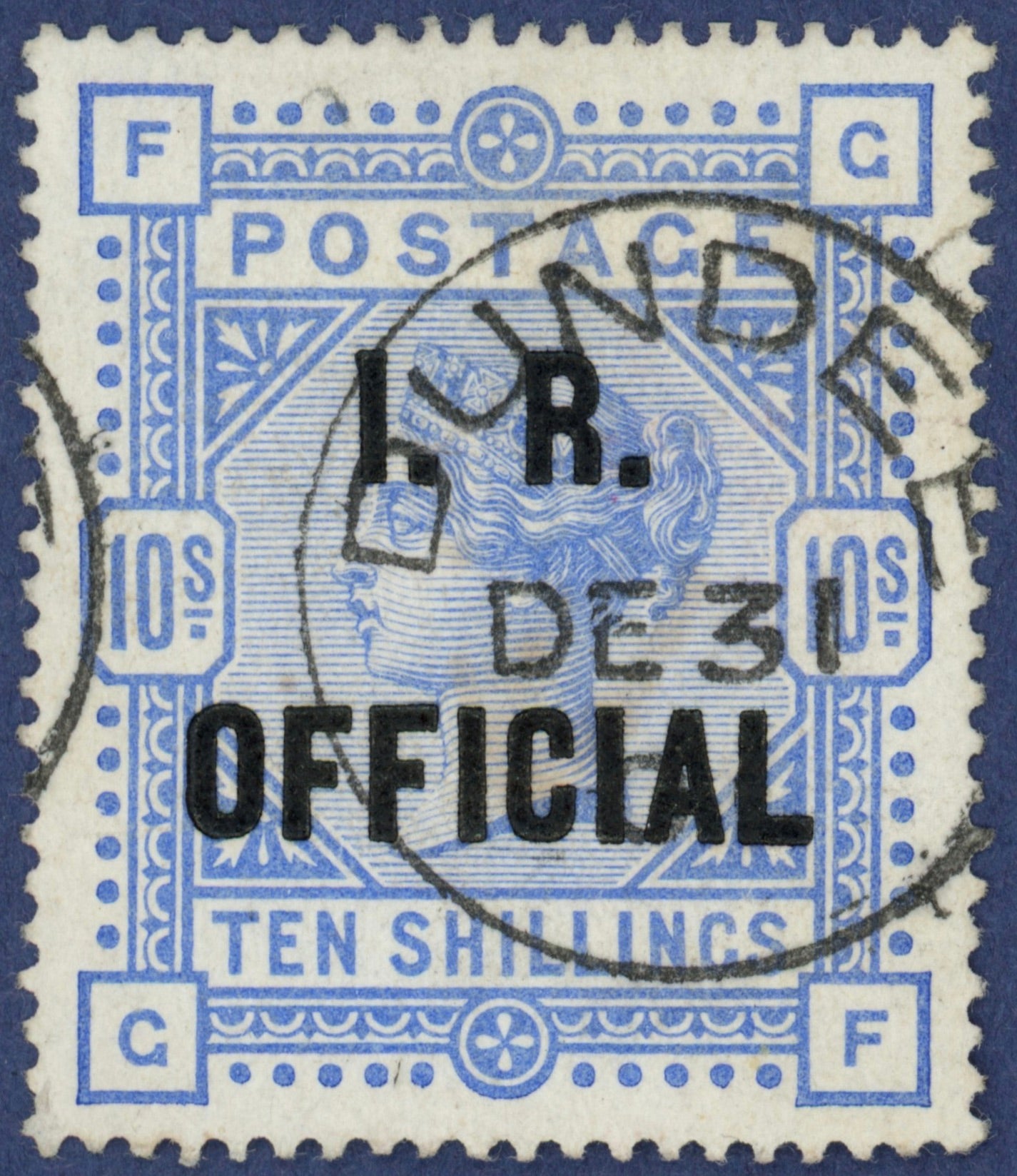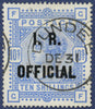 Great Britain 1890 10s ultramarine (I.R. Official), SGO10.