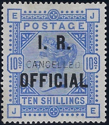 Great Britain 1890 10s Ultramarine (I.R. Official, white paper), SGO10var.