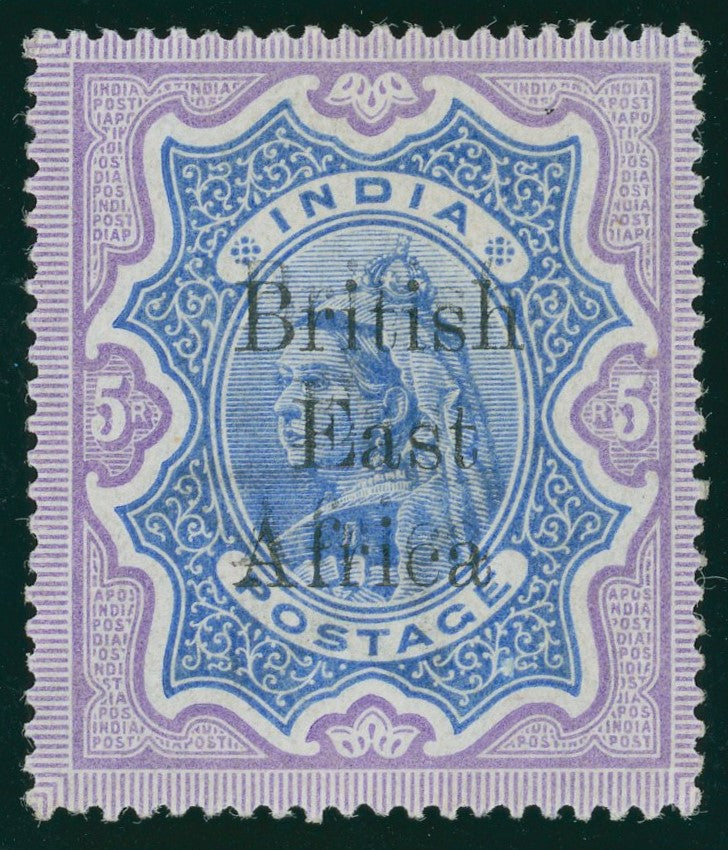 British East Africa 1895-96 5r ultramarine and violet, type 9 overprint on India error, SG63a
