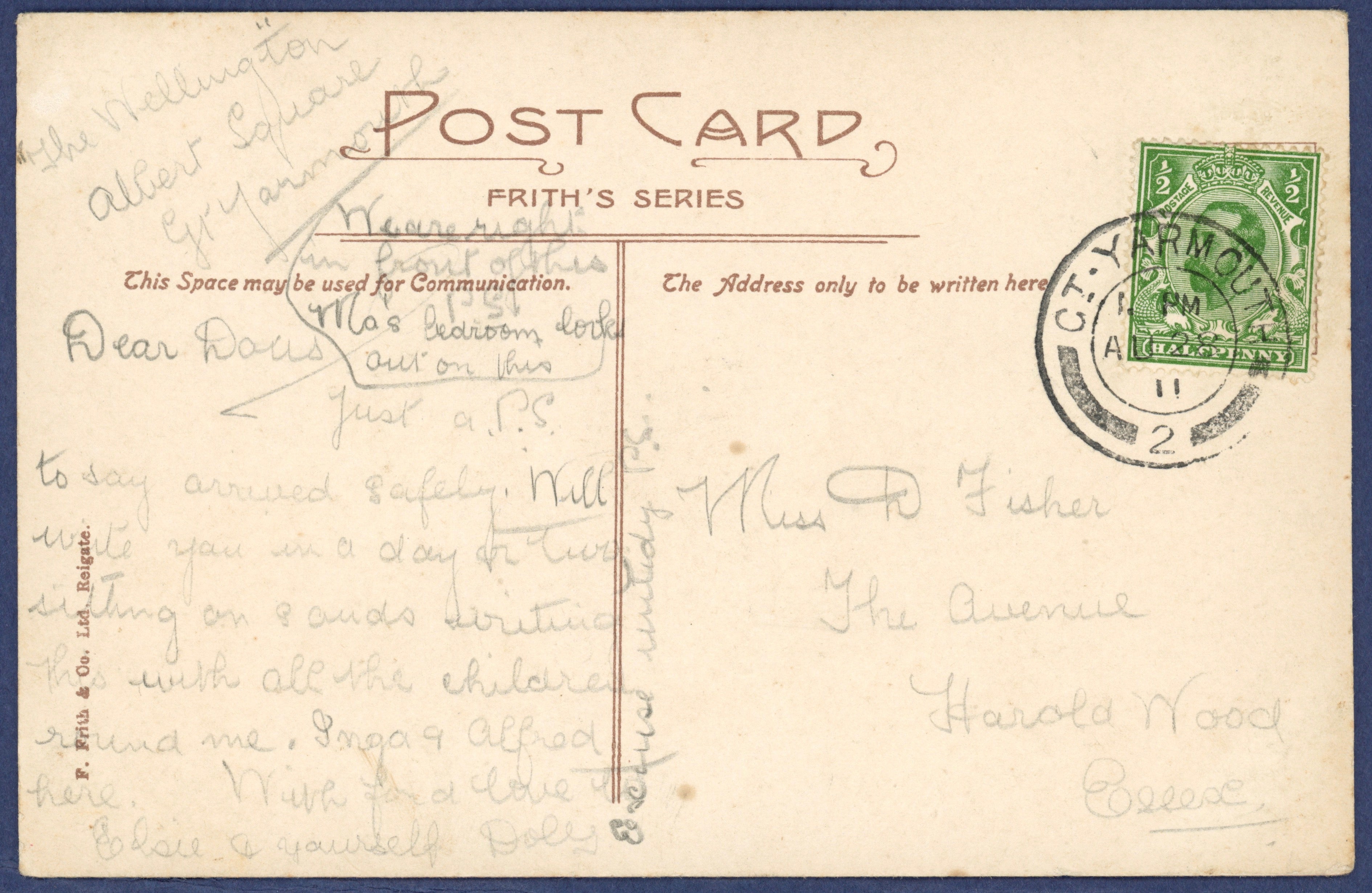 A very fine used example of this difficult perforation variety neatly tied to a picture postcard of Wellington Gardens, Great Yarmouth by a crisp Great Yarmouth double ring circular date stamp for 'AU.28.1911'.
