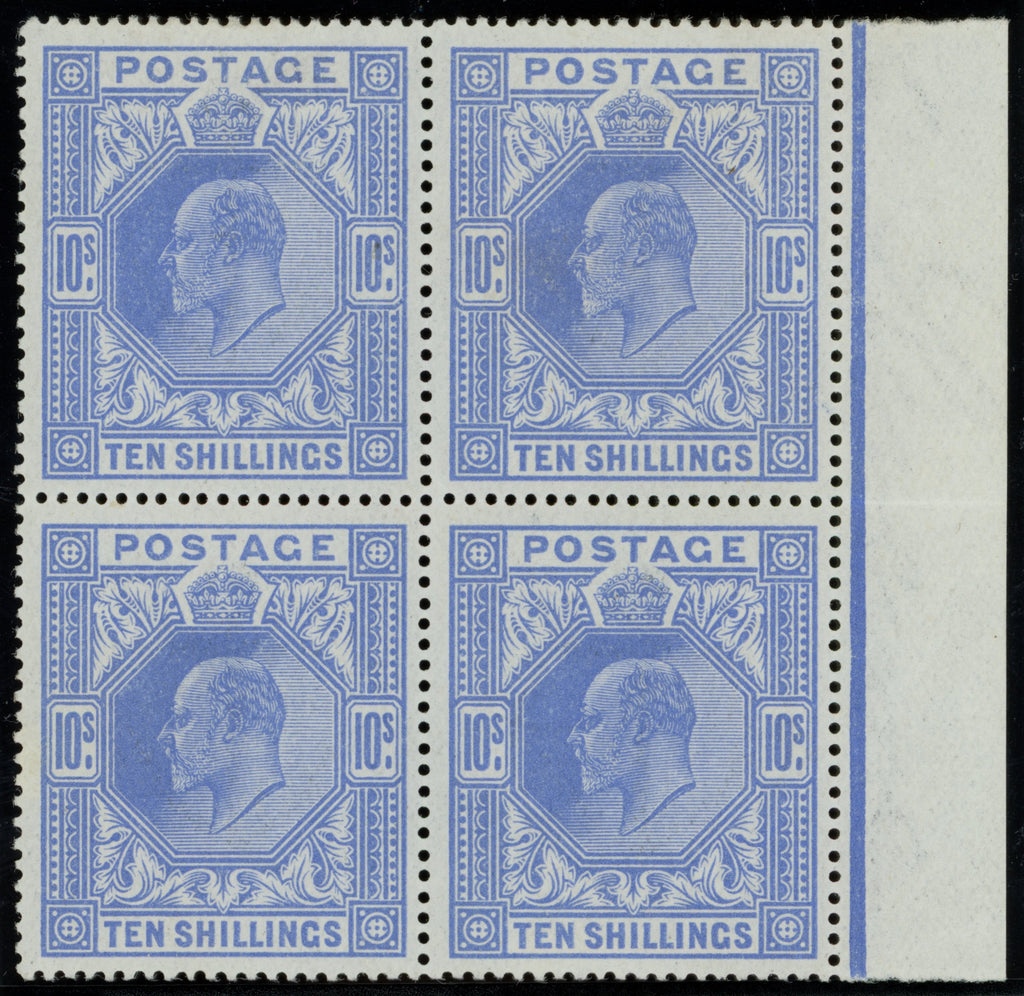 An exceptionally fine and fresh unmounted mint well centred right hand marginal block of four printed at Somerset House.