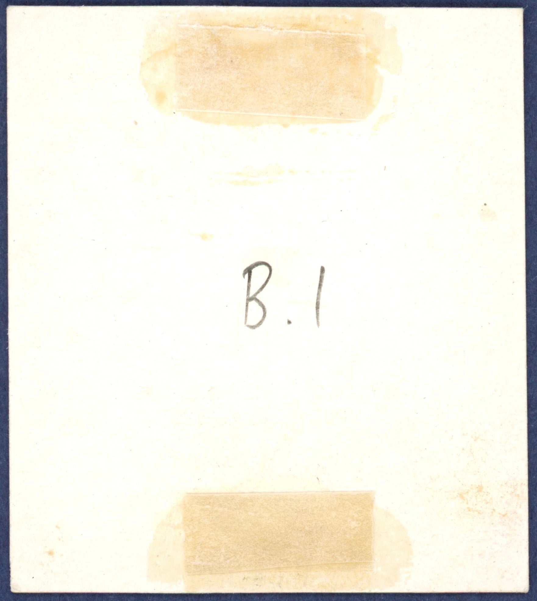 A very fine uncleared example printed in pale rose red on white proof paper (36x40mm) with added "POSTAGE" and "REVENUE".