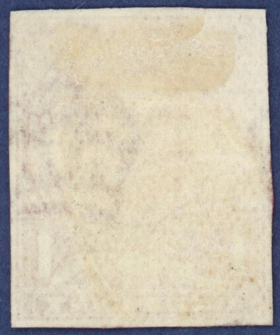 A very fine imperforate plate proof printed in carmine on gummed Crown watermarked paper.