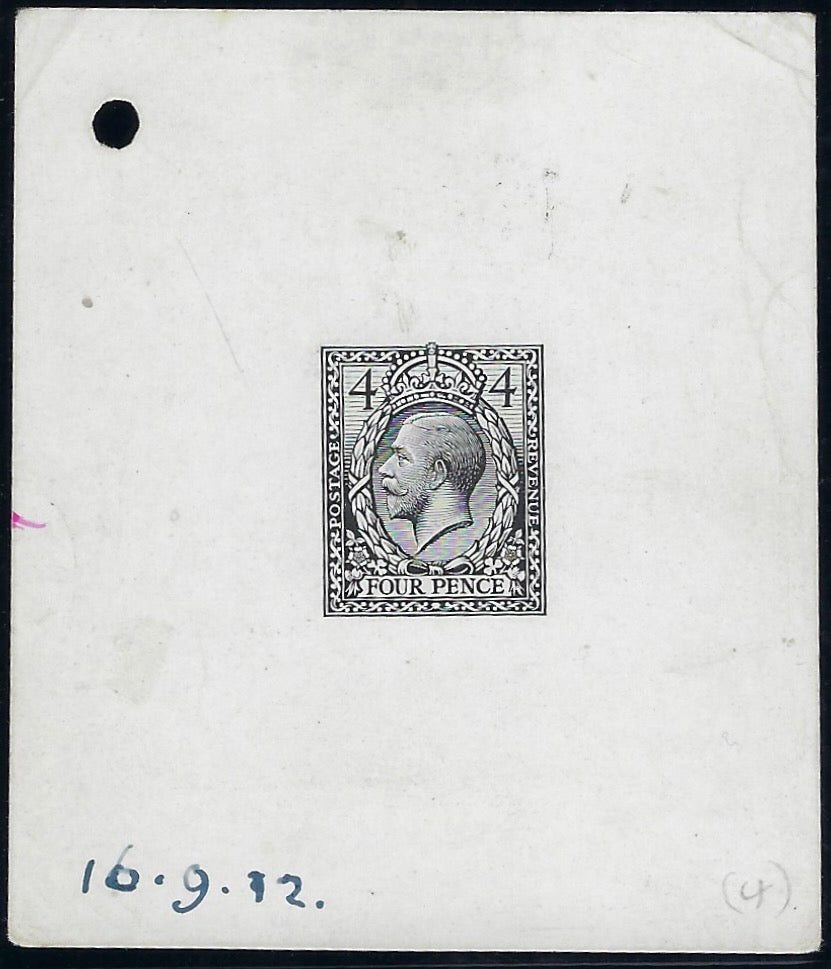 Great Britain 1912 4d Die Proof of Eve's Wreath Design, SG379var.