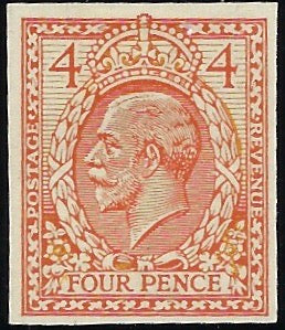 A very fine ungummed imperforate essay on thick white paper in orange, produced by Miller & Motley using their Printex machine. This example interestingly shows minor retouching of the tiny details by the printer, many of the changes being adopted on the later trials.