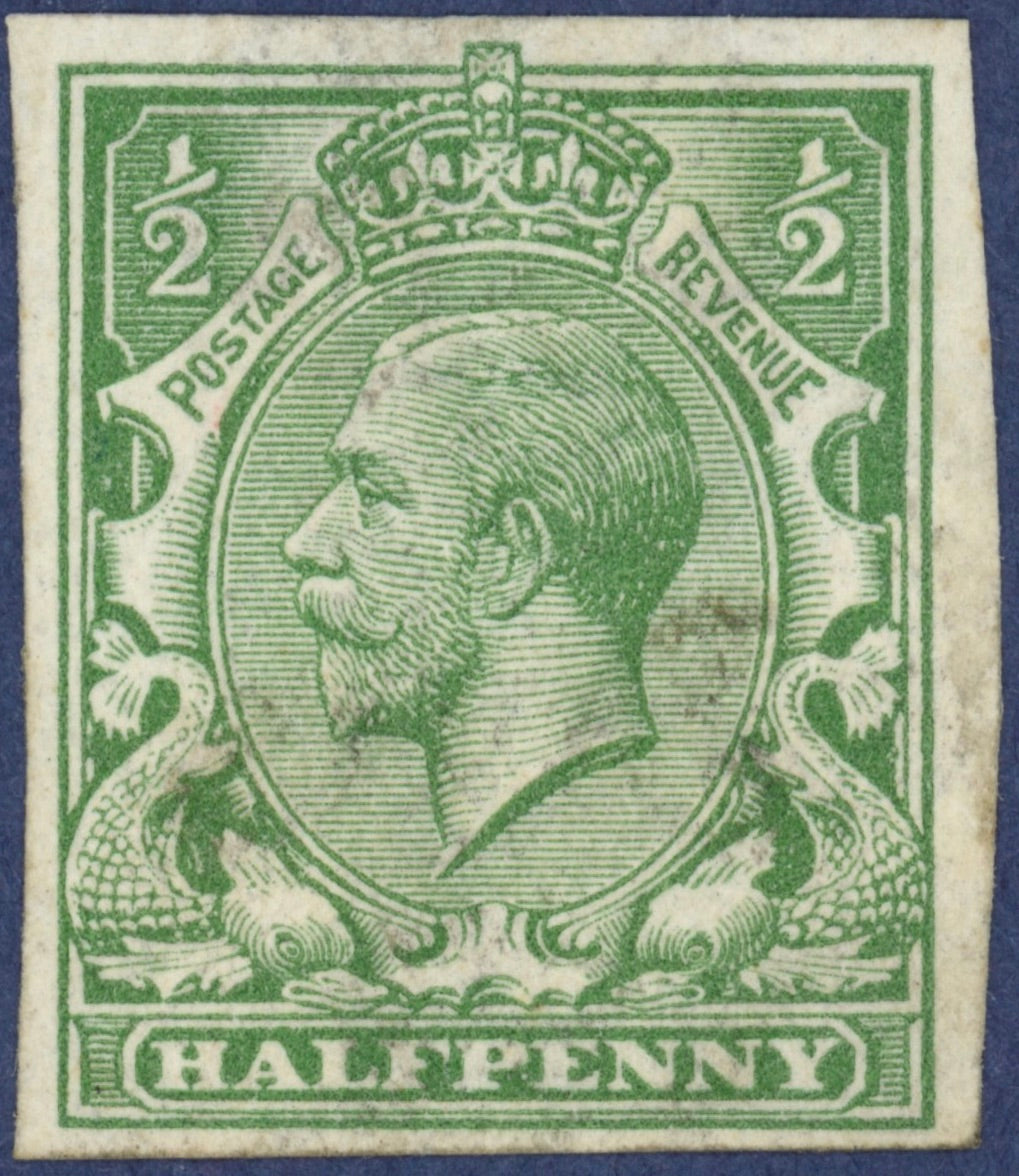 Great Britain 1913 ½d light green trial, SG351var