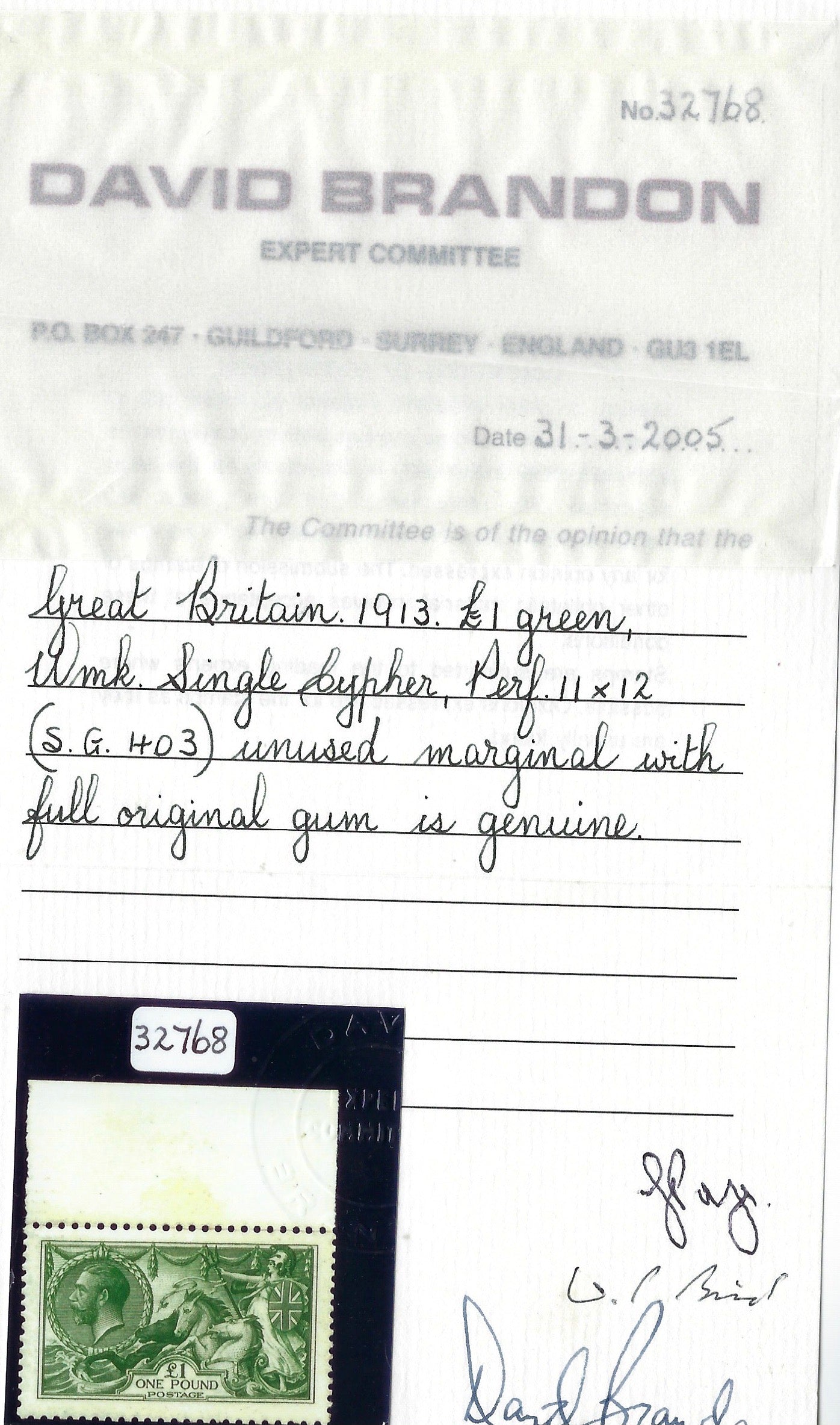 Great Britain 1913 £1 Green "Seahorses", SG403