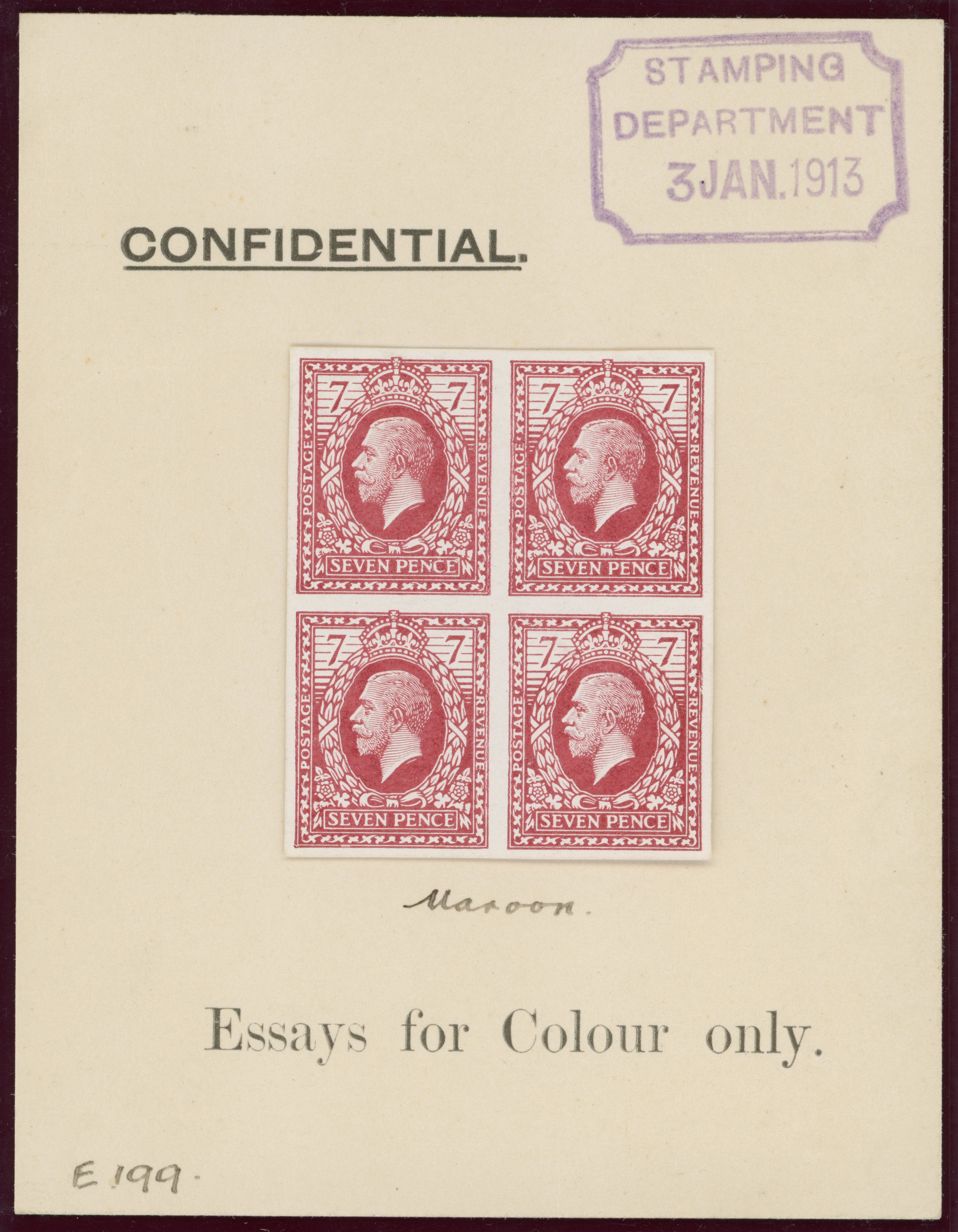 Great Britain 1913 7d Eve's Wreath design colour essays, SG387var.