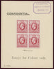 A very fine ungummed imperforate block of four essays (Fig 30a) in maroon on white unwatermarked card mounted on thick card (88 x 113mm).