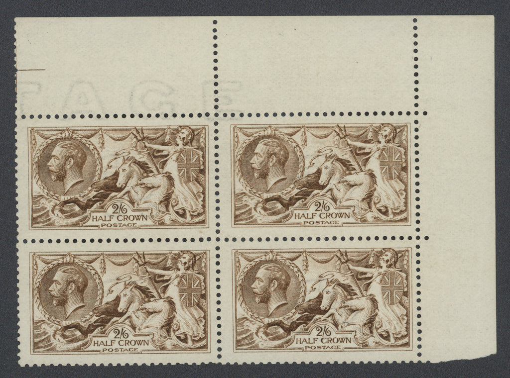 A superb unmounted mint, with full original gum, top right hand corner marginal block of four printed by De La Rue.