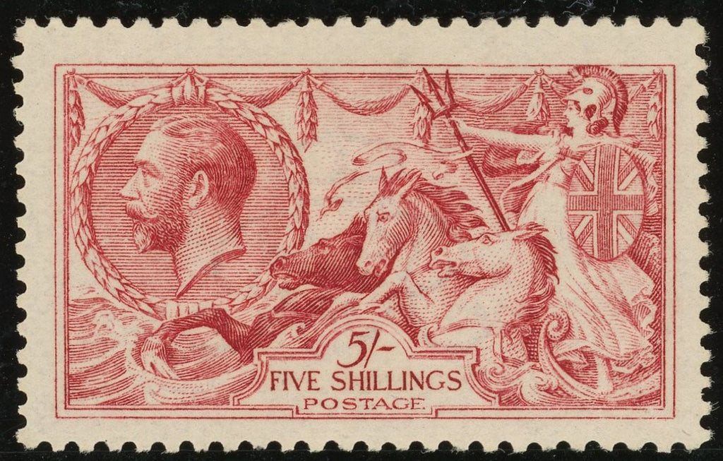 Great Britain 1915 5s carmine "Seahorses", SG409var.