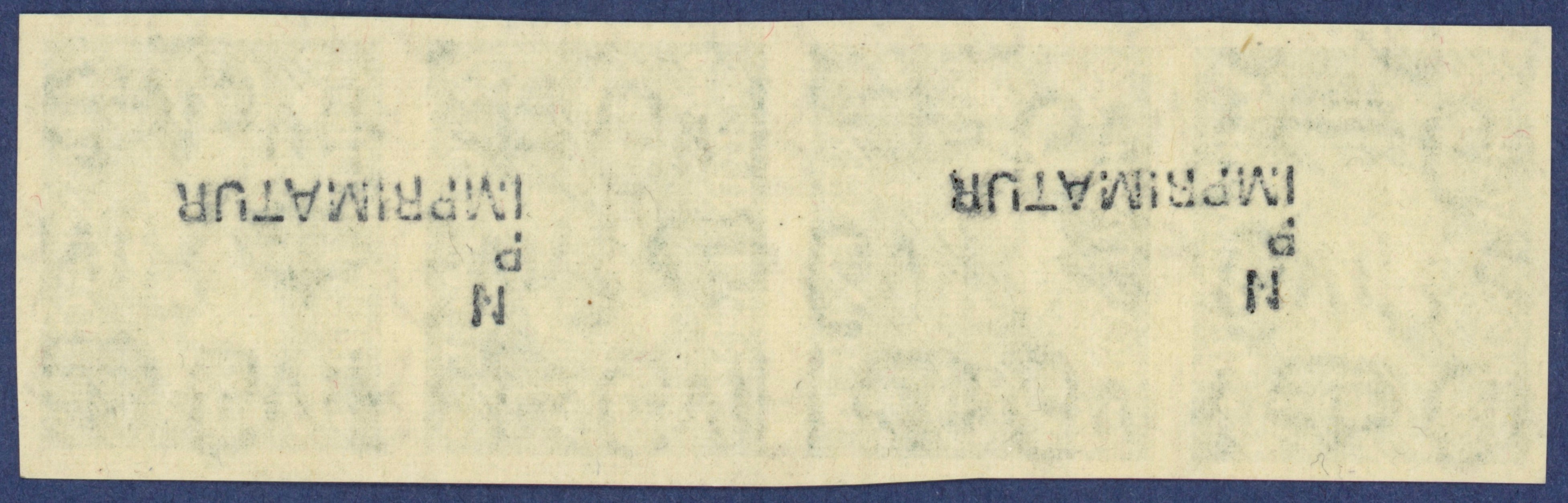 A superb unmounted mint, with full original gum, imperforate imprimatur horizontal tête-bêche pair in a horizontal strip of four with "NPM IMPRIMATUR" handstamp on reverse.