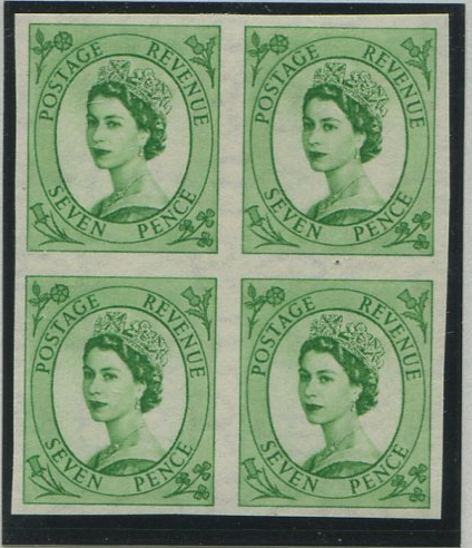 GREAT BRITAIN 1952 7d Bright green "Wilding" (Wmk Tudor Crown) SG524var