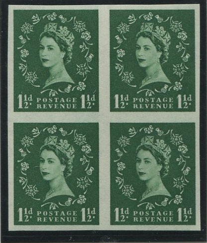 Great Britain 1955-58 11/2d Green "Wilding" (wmk St Edward's Crown), SG542var