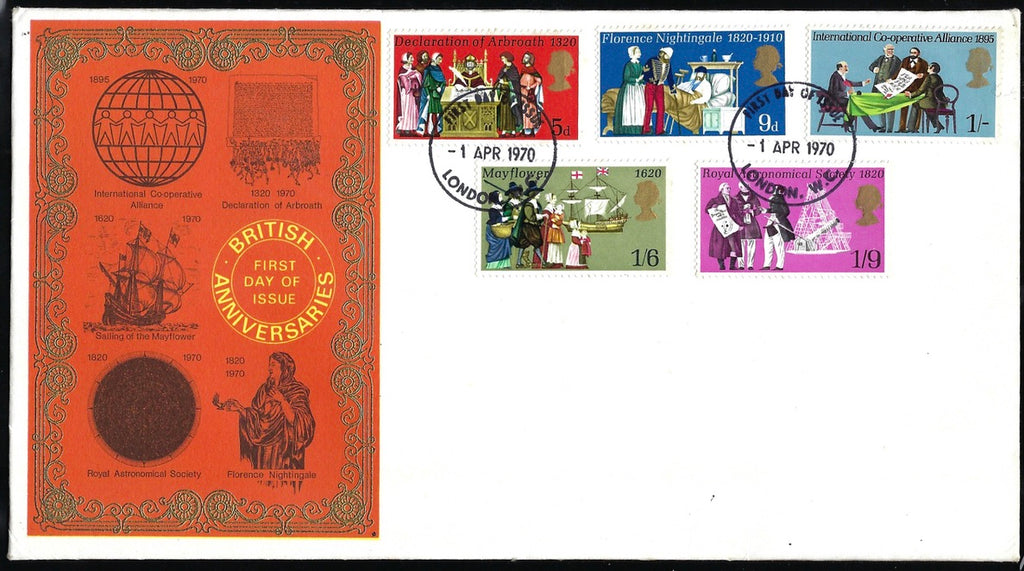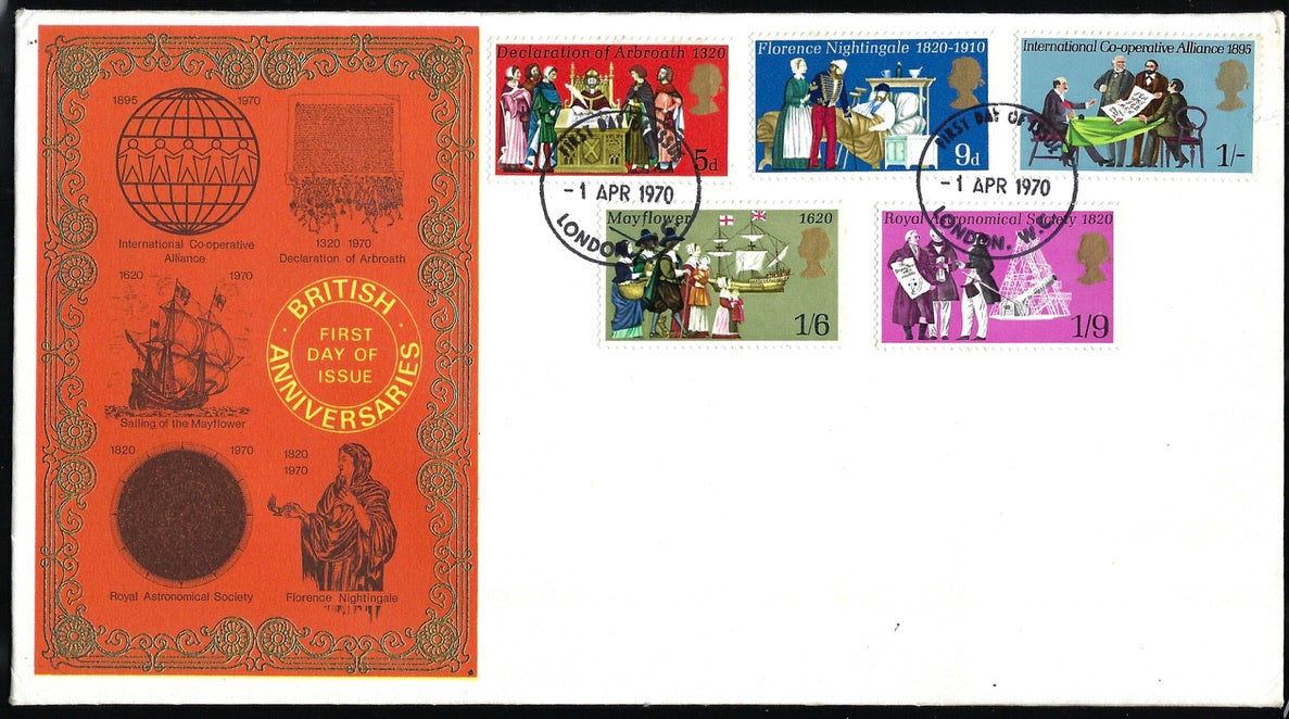 Great Britain 1970 5d-1s9d Anniversaries, events described on stamps, SG823a.