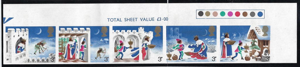 Great Britain 1973 3p Christmas "Scenes from the carol Good King Wenceslas" (Gum arabic) error, SG943Egb.