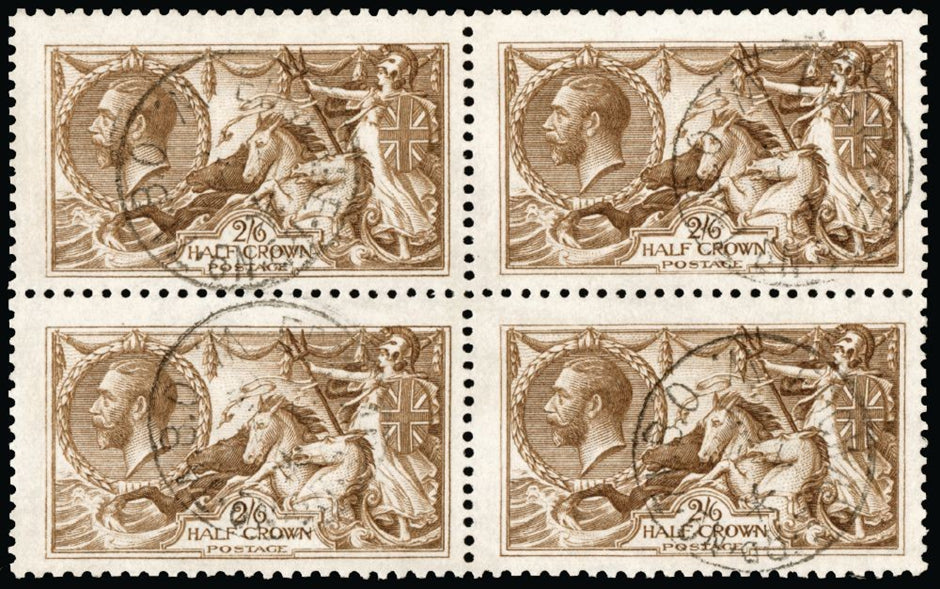 Great Britain 1915 King George V 2s6d yellow brown, "seahorse". SG406