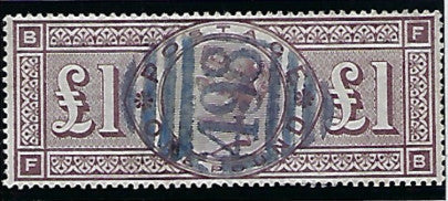 Great Britain Queen Victoria Surface Printed 1888 £1 brown lilac (watermark, Three Orbs), SG186. Very fine and fresh used example lettered FB, neatly cancelled by crisp blue Manchester "498" numeral.
