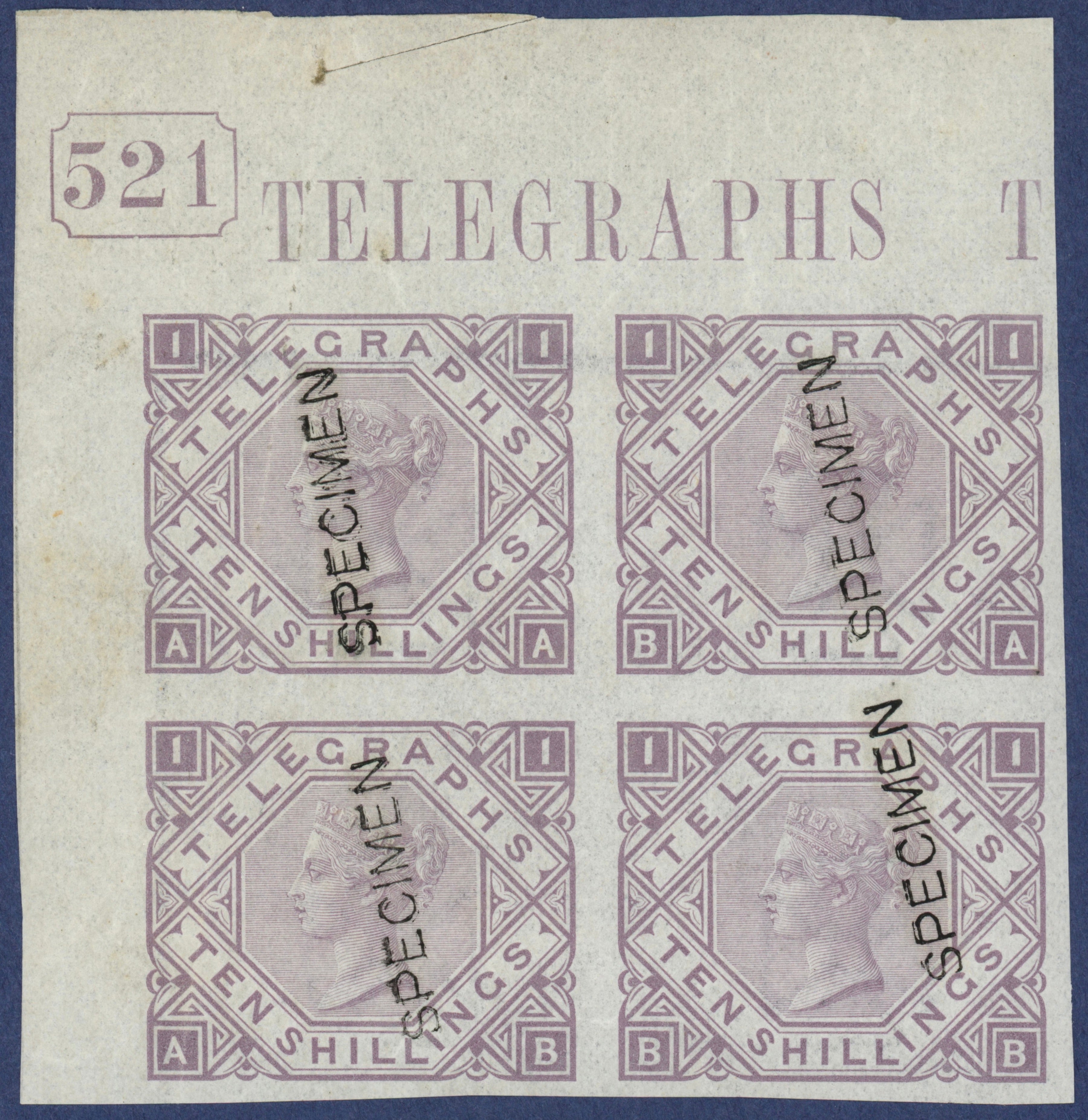 Great Britain 1877 10s colour trial Telegraphs, Plate 1, SGT16svar.