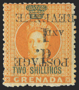 Grenada 1888-91 1d on 2s orange, type 18 surcharge, ERROR SURCHARGE INVERTED, SG44a.