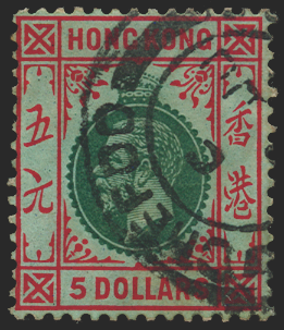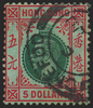 Hong Kong British Post Offices in China 1912-15 $5 green and red/green (white back), neatly cancelled by part 'CHEFOO' circular date stamp, SGZ310.