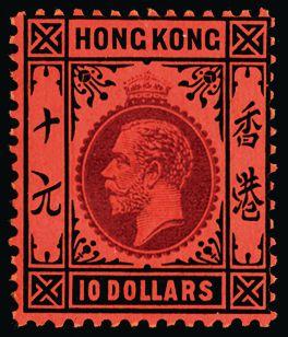 Hong Kong 1912-21 watermark MCA $10 purple and black/red SG116