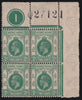 A fine unmounted mint with original gum (hinged in margin only) upper right corner block of 4 showing plate number "1" and "Q27121" requisition number, from the 1922 printing.