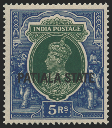 Indian Convention States Patiala 1937-38 5r green and blue, 'PATIALA STATE', SG94.