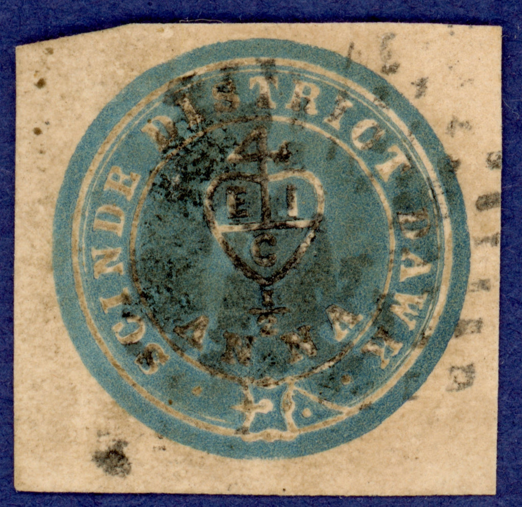 India 1852 ½a blue Scinde Dawk, SGS2.