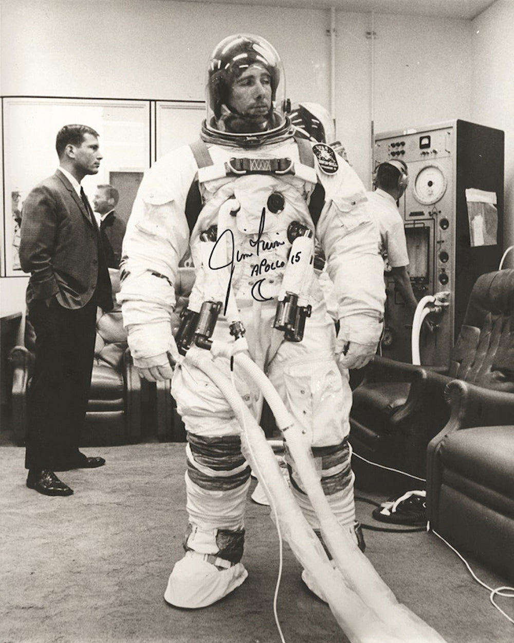 - A black and white signed photograph of Apollo 15 Lunar Module pilot Jim Irwin, the eighth man on the moon