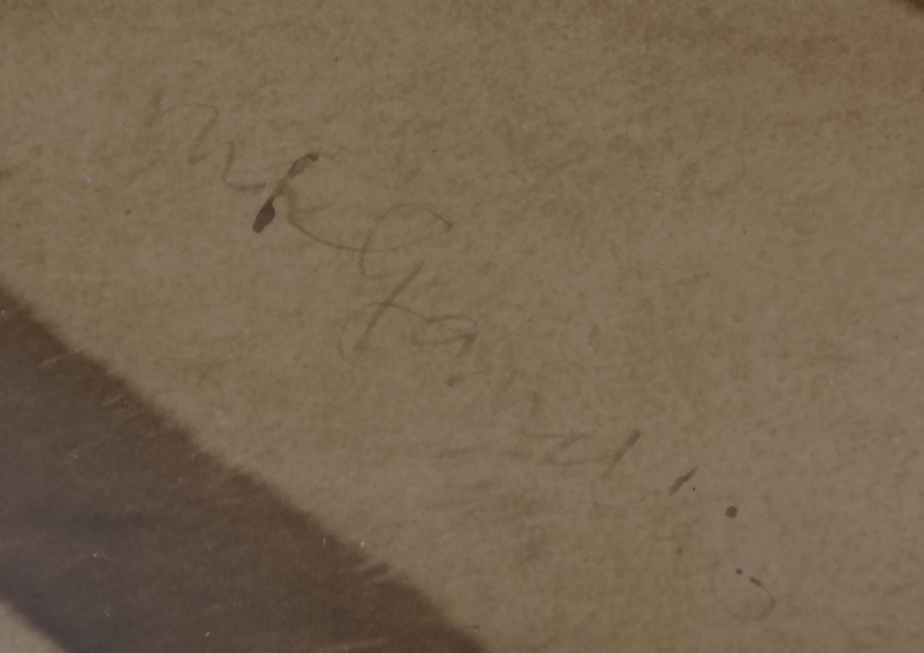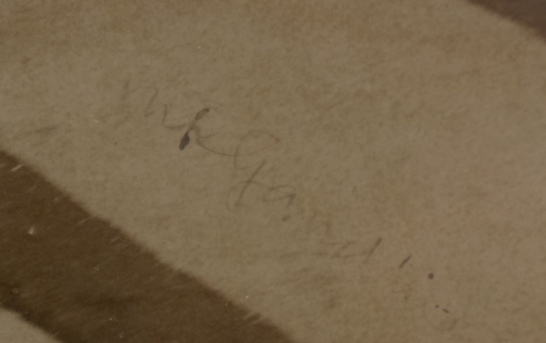 Gandhi has signed handsomely towards the bottom right in black ink. The signature is slightly faded.