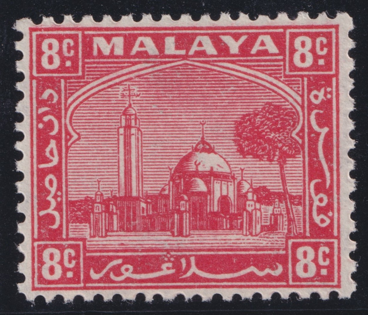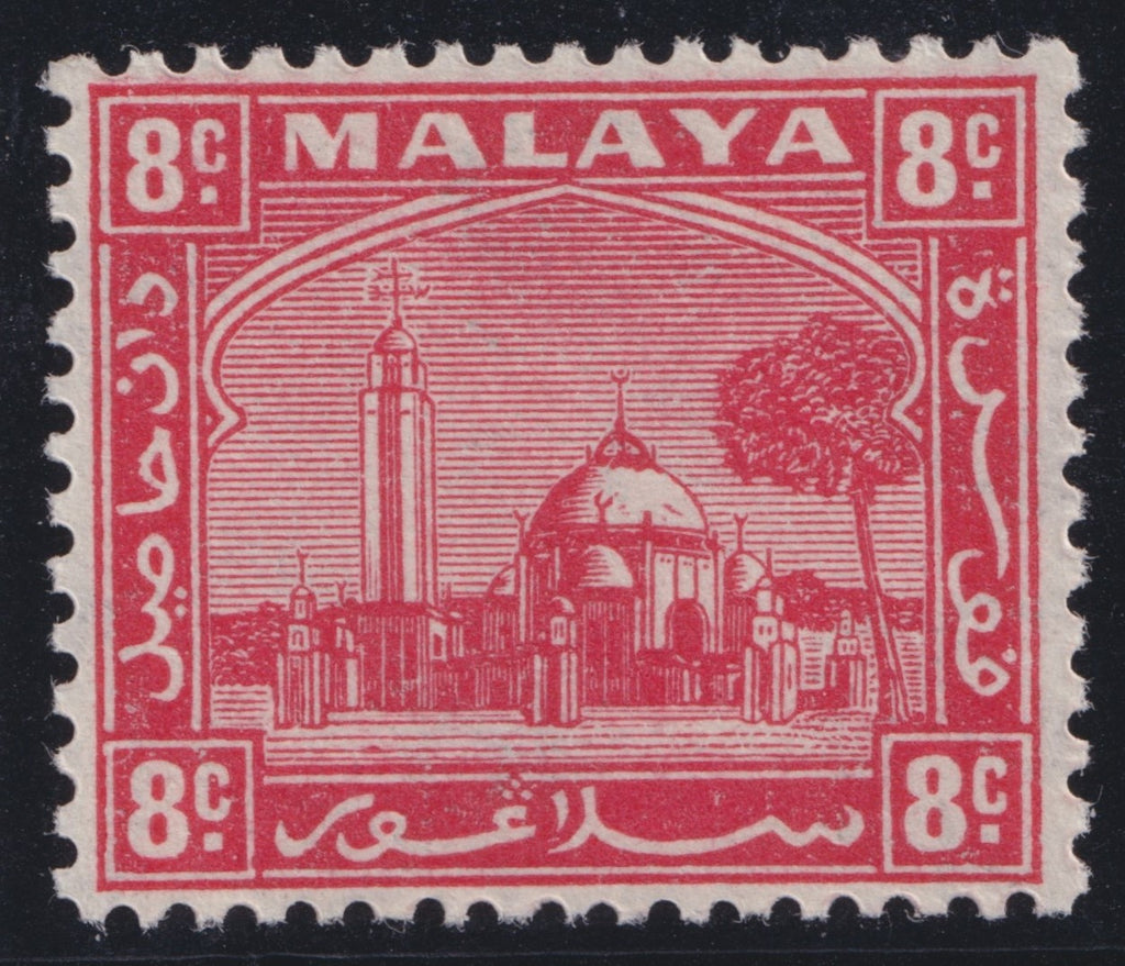 Malaya - Selangor 1935-41 8c scarlet on thin striated paper, prepared for use but not issued in this colour, SG75var.