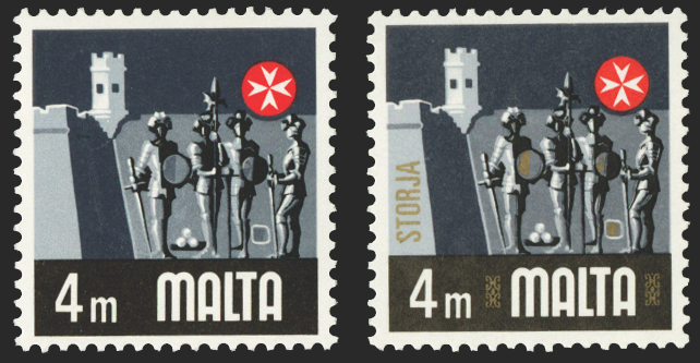 Malta 1973-76 4m 'History', error gold (inscription and decoration) omitted, SG487a.