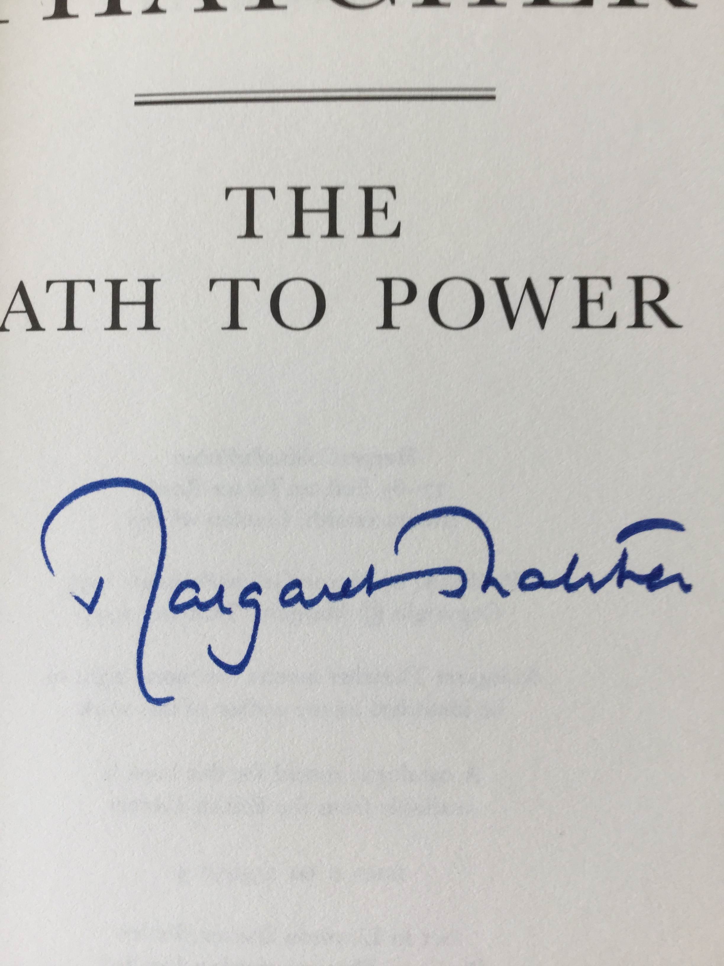 Beautifully autographed by Margaret Thatcher in blue ink on the title page. One of the largest Thatcher autographs you’ll see.