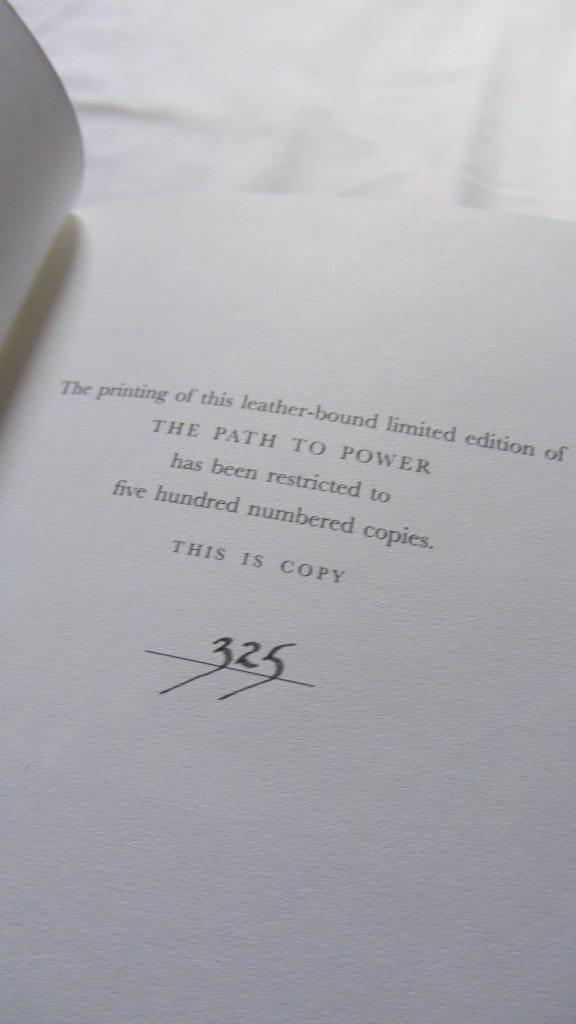 A leather-bound, gold leaf, limited edition copy of Margaret Thatcher’s 2005 memoir The Path to Power.