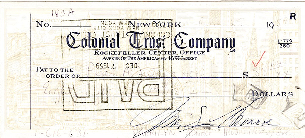 - A bank cheque signed by Hollywood icon Marilyn Monroe
