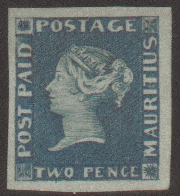 Mauritius 1848 2d deep blue on grey to bluish paper, earliest impression, SG5.