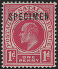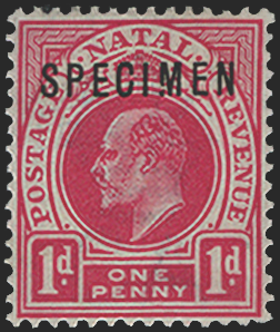 South Africa Natal 1902-03 1d carmine SPECIMEN variety, SG128svar
