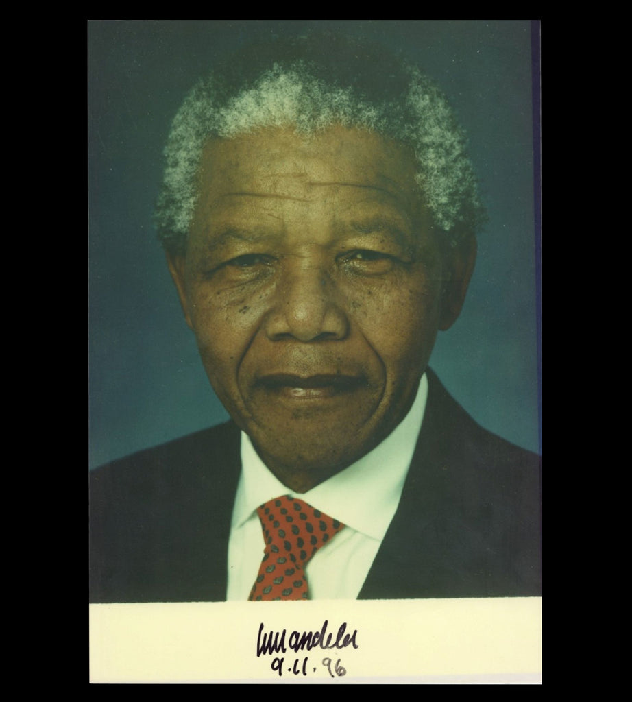 Mandela has signed and dated the portrait "N.Mandela 9.11.96" in the lower margin in black felt tip.