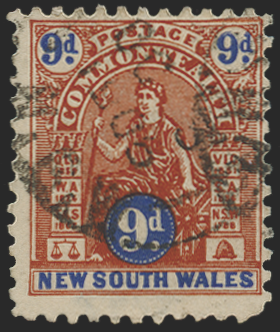 Following the formation of the Commonwealth 9d stamps were issued in 1903 inscribed "COMMONWEALTH" and with the initials of each member along with its year of founding.
