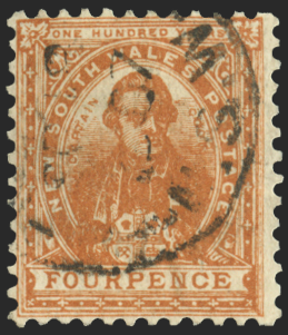 Australia New South Wales 1907 4d orange-brown (watermark w11), VARIETY WITHOUT WATERMARK, SG357var.
