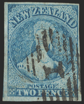 New Zealand 1864 2d pale blue (Plate 1 worn), watermark 'NZ', imperforate, SG98.