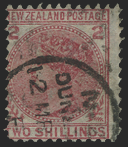 New Zealand 1874-78 'First sideface' 2s deep rose, neatly cancelled by large part 'DUNED(IN)' circular date stamp.