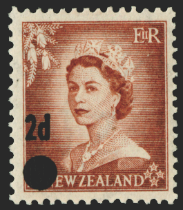 NEW ZEALAND 1958 2d on 1½d brown-lake error, SG763b