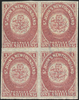 Newfoundland 1862-64 1s rose-lake on hand-made wove paper, block of 4, right pair showing part '(STACEY ) WISE' papermaker's watermark, SG23.