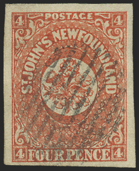 Newfoundland 1857-64 4d scarlet-vermilion on thick machine-made paper, SG4.